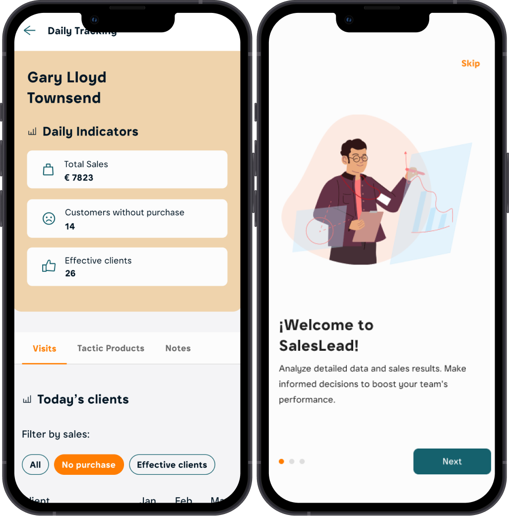The app was designed for sales supervisors managing B2B and B2C teams nationwide. Their main challenges included tracking dispersed salesforces, monitoring goals, and aligning resources across multiple regions.